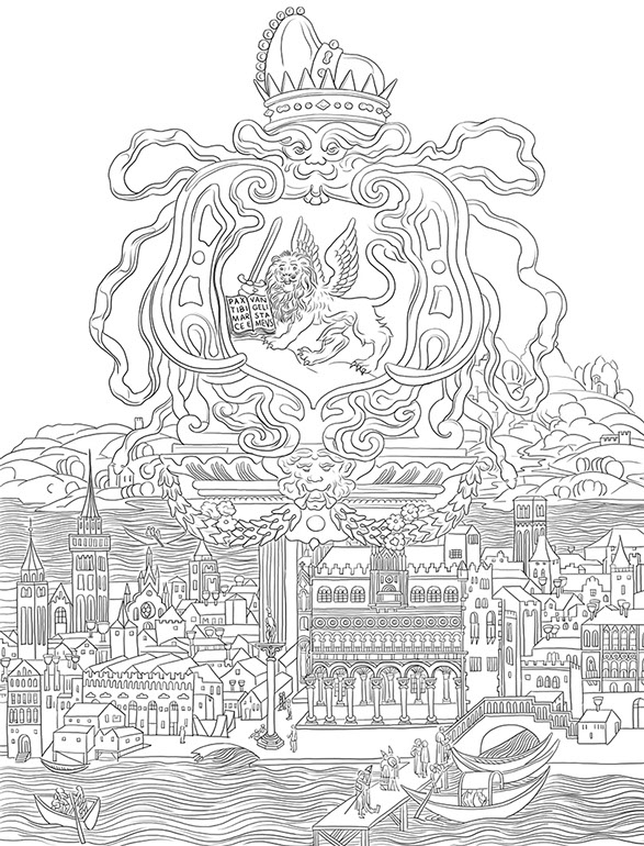 Venedig ist als großes auf dem Meer schwimmendes Schiff aufgefasst worden. Man meint ständig auf See zu sein.